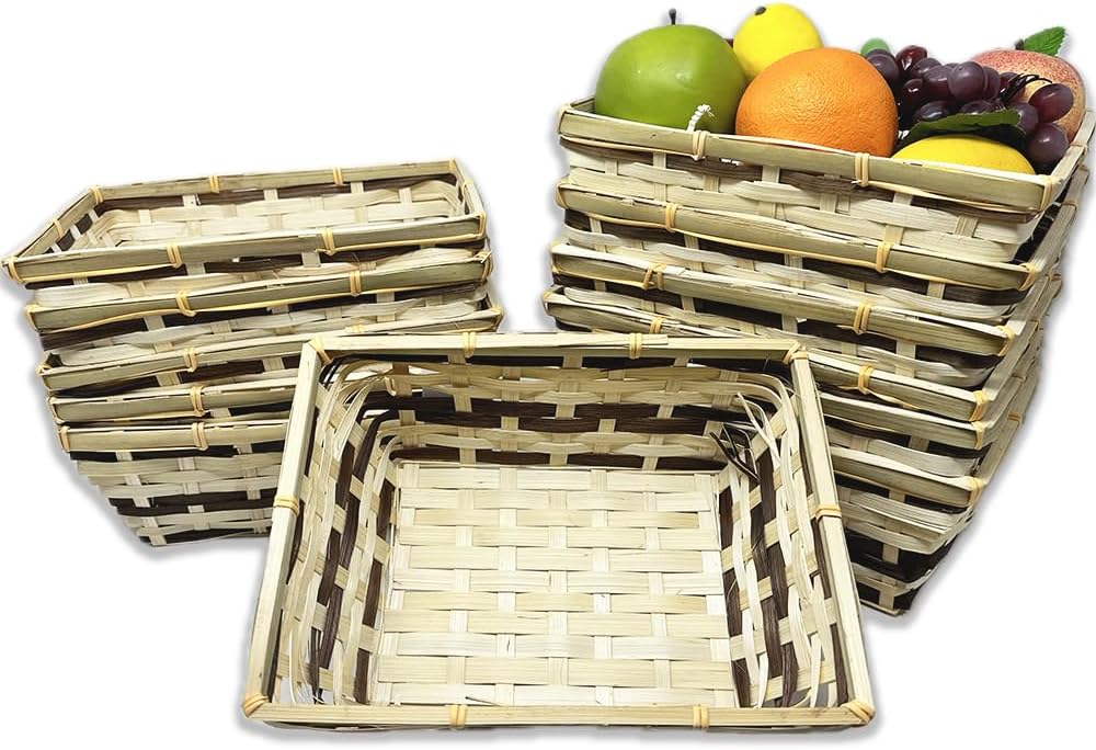 12 Pack Premium Handmade 12” x 6” Natural Bamboo Rectangular Storage Baskets – Multipurpose Pantry & Countertop Organizer for Bread, Fruit, Bathroom, Entryway, Gifts & Home Decor – Bulk Supply Set