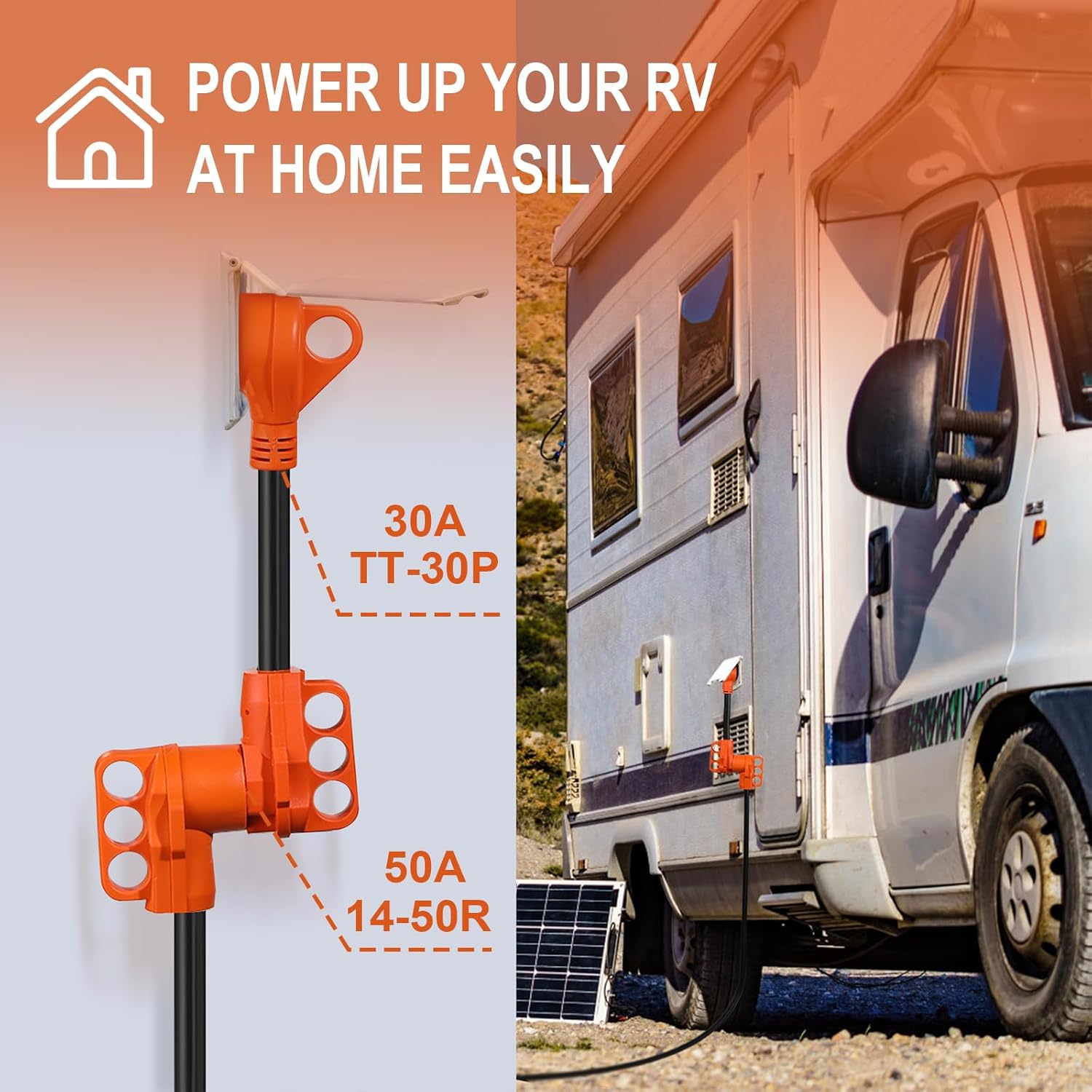 25FT 50 Amp RV/Generator Extension Cord Outdoor with Grip Handle,125/250V,12500W, 4 Prong,Heavy Duty 6/3+8/1 Gauge STW,NEMA 14-50P to 14-50R with LED Power Indicator & Polarity Lamp,ETL Listed,30 Amp to 50 Amp RV Adapter Cord,NEMA TT-30P to NEMA 14-50R Electrical Power Adapter,10 Gauge RV Dogbone Adapter Cord 12 Inch with Grip,ETL Listed