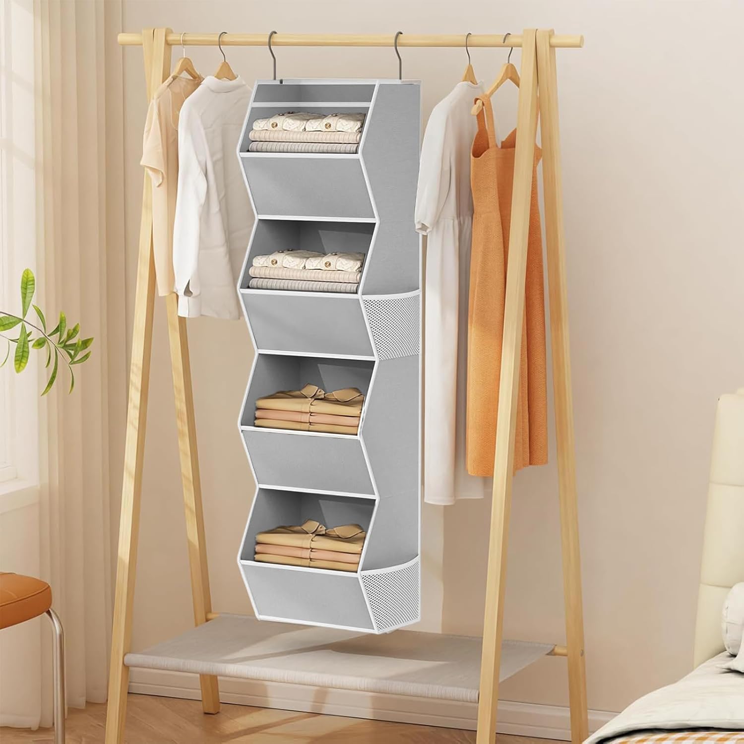 Product description The closet shelf organizer with side pockets is designed to maximize storage efficiency in any space. Foldable for easy storage and transport, it features a durable non-woven fabric construction that ensures longevity while maintaining a sleek appearance. Equipped with a sturdy metal hook, this organizer can be effortlessly hung on hangers or wardrobe shelves, making it versatile for various uses. Its space-saving design helps declutter your home, apartment, dorm, or bedroom by providing compartments for clothing, toys, shoes, towels, hats, and other necessary items. Ideal for wardrobe organization, it keeps items neatly arranged and easily accessible. The side pockets add extra convenience for smaller items, ensuring everything has its place. Enhance your home organization with this practical shelf organizer, perfect for creating a tidy and functional living environment.SpecificationProduct material: strong and thick non-woven fabricProduct size: as shown in the pictureProduct weight: 739 gramsListwardrobe storage shelf*1Note:1. Due to lighting effects and display angles, there may be color differences in the product.2. Due to manual measurement, there may be errors in product size, please understand. Manufacturer Contact Information Refer to description