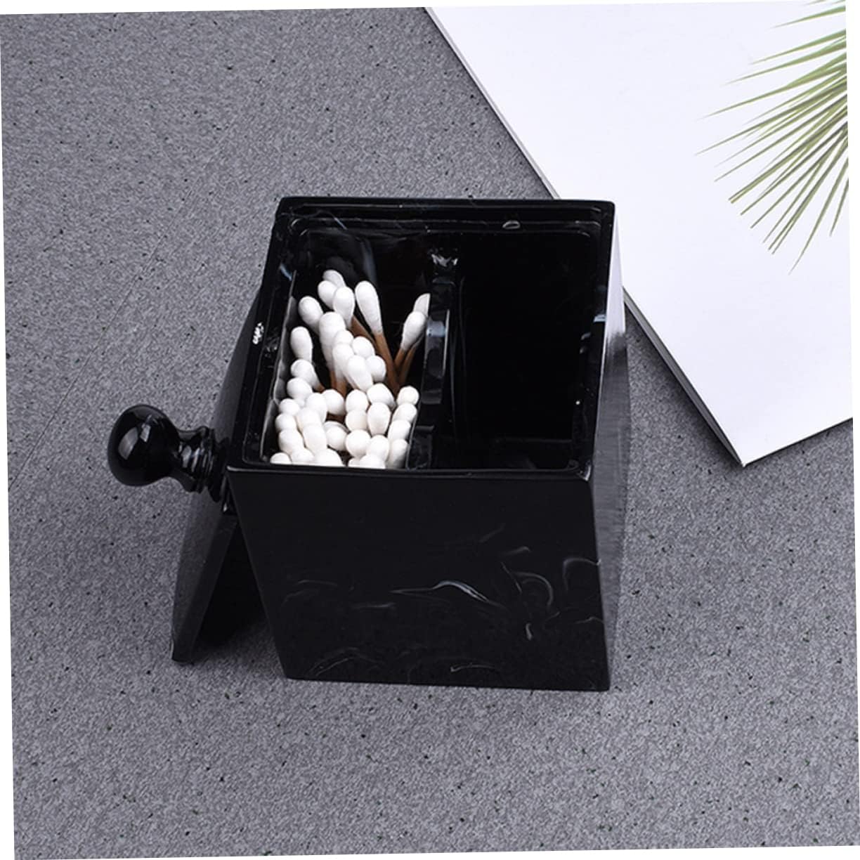 Package List 2 x Swabs Box Features - Color: Black Resin Apothecary Jars. - Material: Resin. - Size: Approx. 7.9 x 7.9 x 11.2cm. - With a lid, this storage container can keep the candies, snacks, toothpick, swab clean and dry Makeup Cotton Box. - With covers attached, protect your items and keep them Cotton Swabs Holder. - Space saving design provides plenty of room for storing a multitude of small essentials Doble Grids Swab Organizer. - Smooth is safe for your finger and convenient for cleaning Cotton Pads Holder. - Excellent materials and workmanship. Modern marble design is functional yet decorative.Goods InformationCotton Swabs Holder You can easily find out what you need.Doble Grids Swab Organizer Put your toothpicks, cotton swabs, or other small items in it, and keep your table clean and tidy.Resin Apothecary Jars This is a resin marble pattern storage box with cover design for cotton swabs and makeup cotton